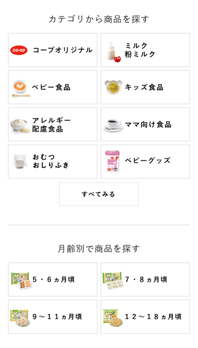 子育てに特化した「カテゴリ」や「月齢別」で、欲しいものがすぐ見つけられる♪