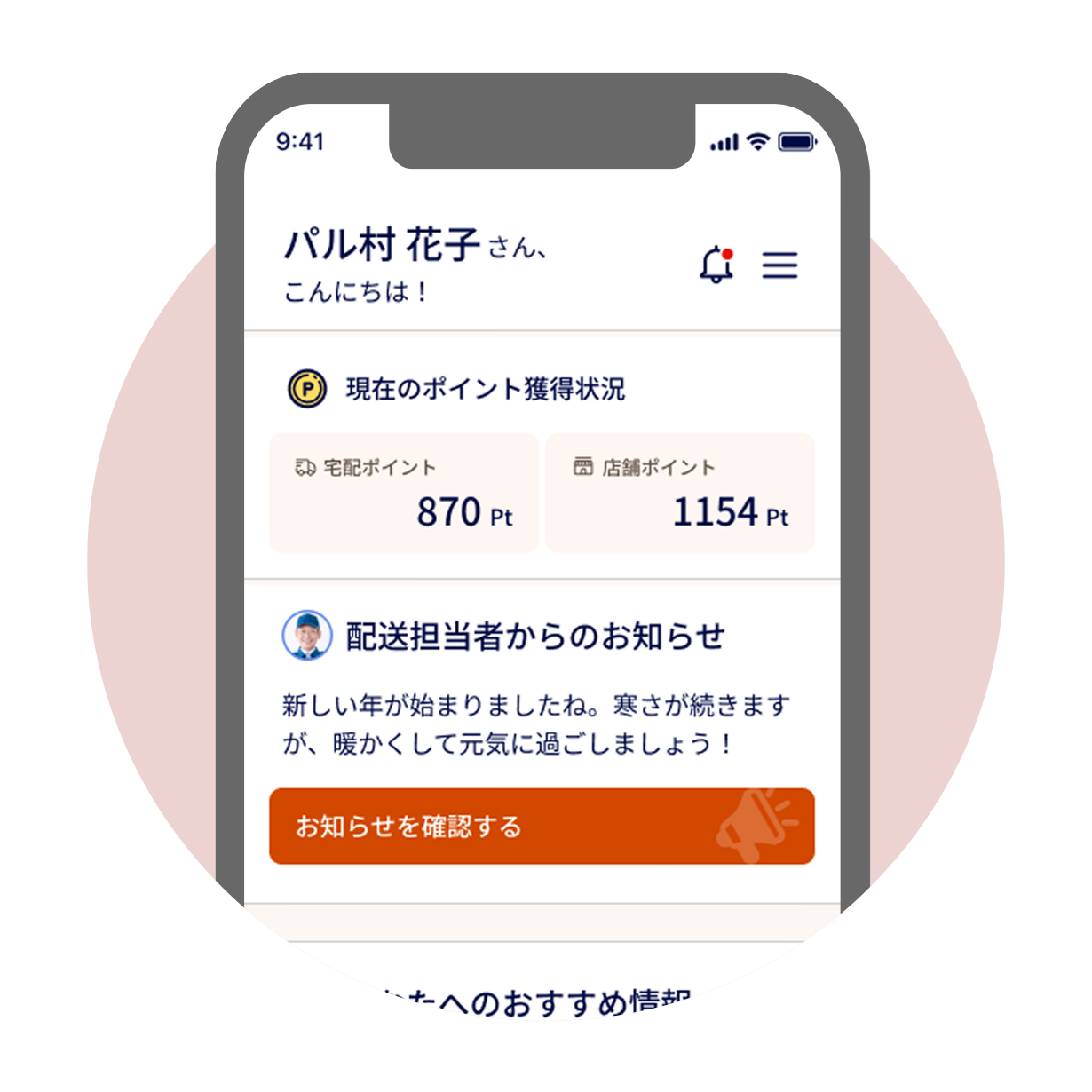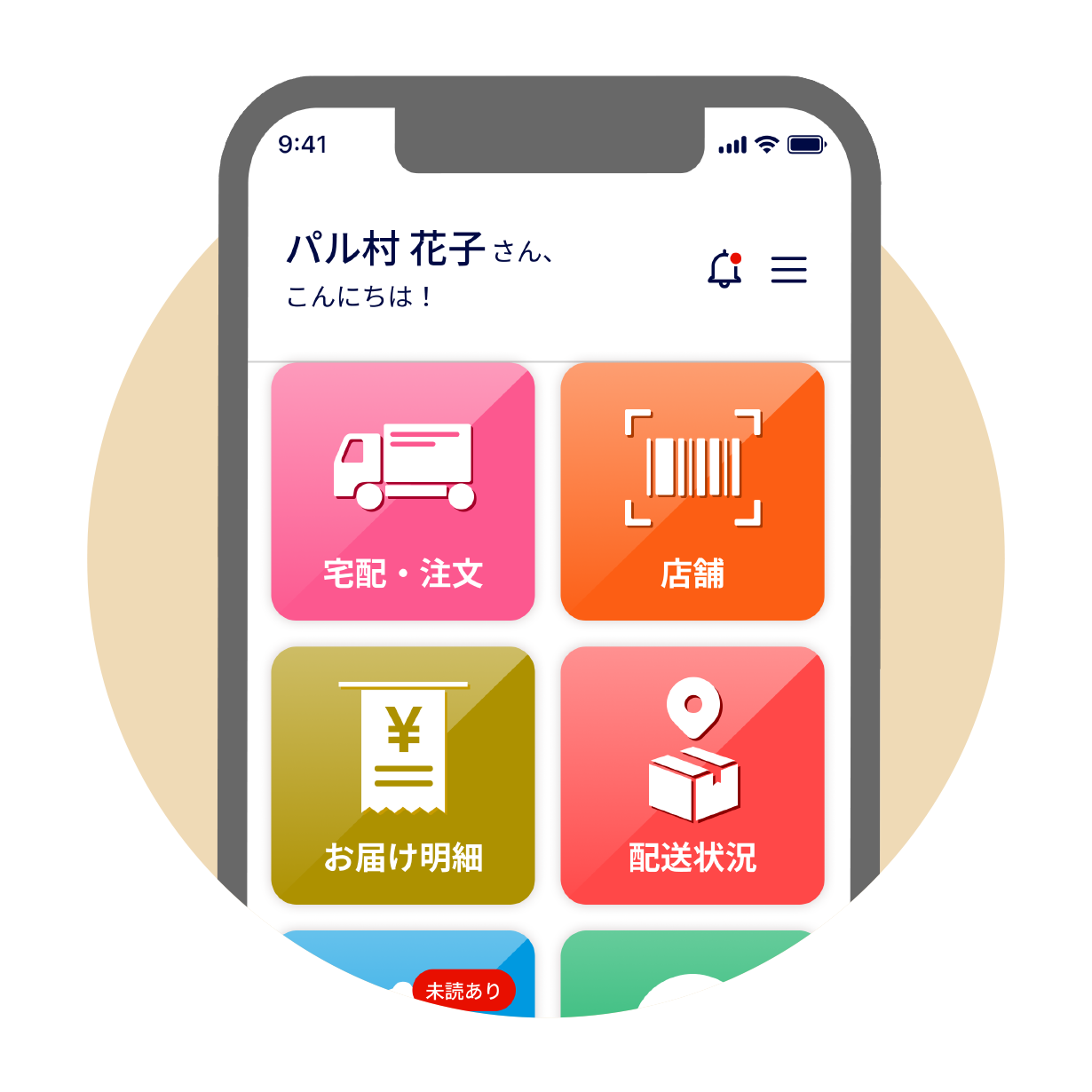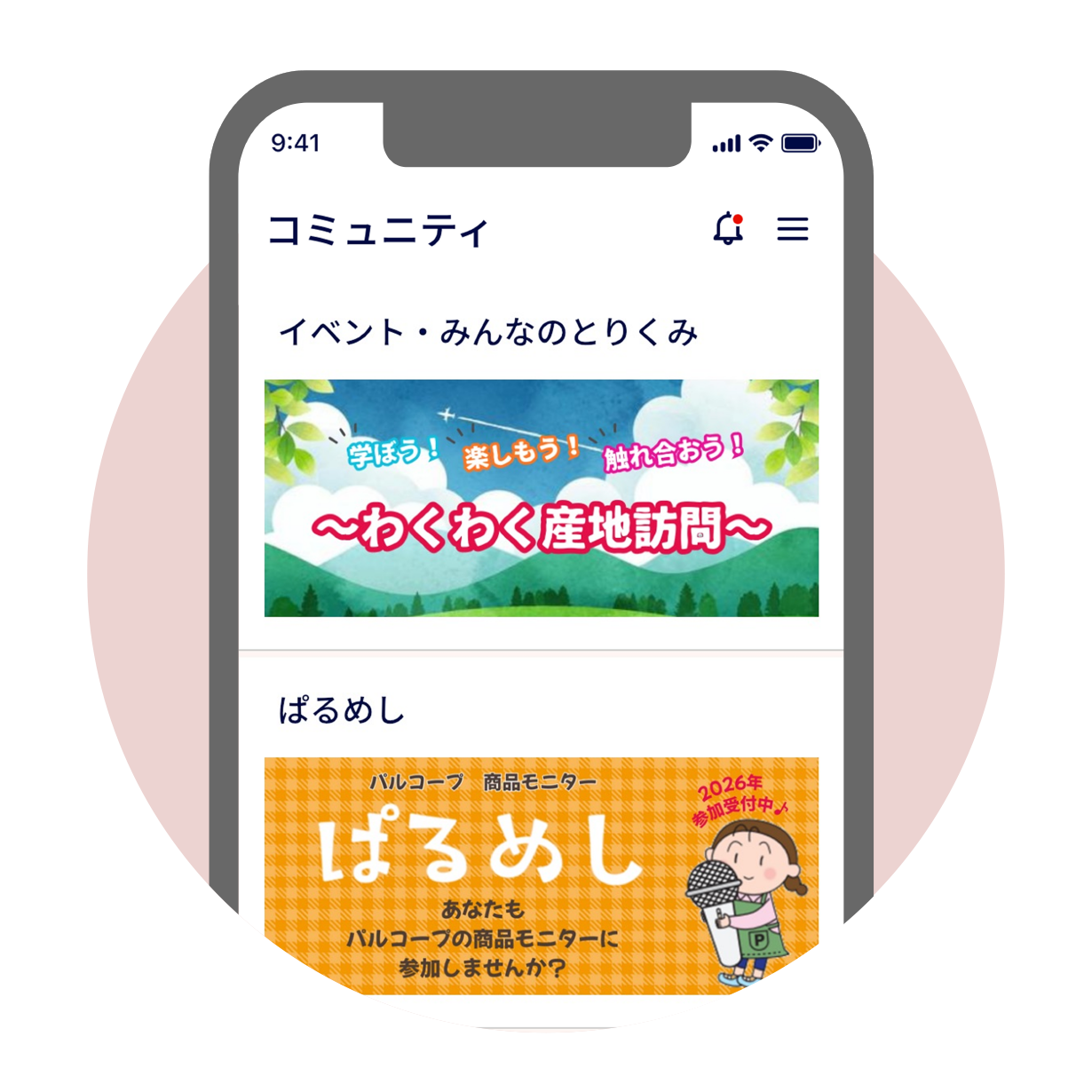 従来のMyパルコープアプリは、宅配をご利用の組合員さん向けに開発したものですが、この「パルコープアプリ」は、宅配だけでなく店舗でのお買い物やイベント申込もできるよう開発した総合アプリです。