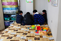 日中は高齢の方のためにデイサービスとして使っている場所が、夕方には子どもたちのための子ども食堂に。4時ごろに訪れると、調理はほとんど済んでおり、準備万端になっていた。調理メンバーは15人ほどのボランティアが、月3回開催の内1回入れるようにローテーションを組んでいるという。この日は6名体制。子ども食堂ができた3年前からのお馴染みの顔だという。中には料理の先生もいてご飯の味には自信ありと聞いた。「今日は前にパルコープさんから届いた豚肉に少し買い足して、豚のしょうが焼きと、ほうれん草とベーコンのバター炒め、きざみうどんです。あとは大皿に作ったチンジャオロースや白菜の炊いたん、サラダなどをバイキングみたいによそってもらうんですよ」。子どもにはジュースとおやつ付き。