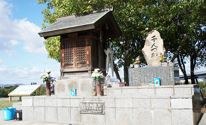 1945年6月7日、大阪砲兵工廠へ攻撃予定だったが、城北公園周辺にも爆弾を投下。淀川の河川敷に遭難した人たちを狙い撃ちするようにP51戦闘機からの機銃掃射が襲い、1000人以上の民間人が亡くなりました。大阪の空襲の中でも、悲惨な無差別攻撃の一つだったと言われています。