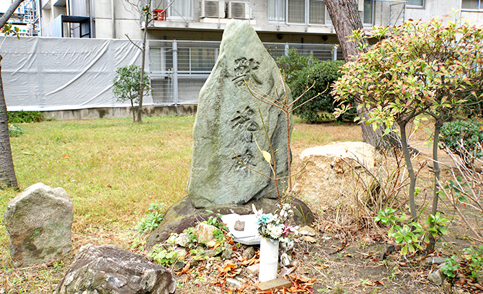 戦時中このあたりは「陸軍糧秣(りょうまつ)大阪支廠」があり、陸軍の食料・飼料調達などで兵士の食料や軍馬の餌を扱い、大阪港の軍事拠点として重要な役割を担っていました。ここで多くの家畜が処理され船積みされたことから、鎮魂碑が建立されました。