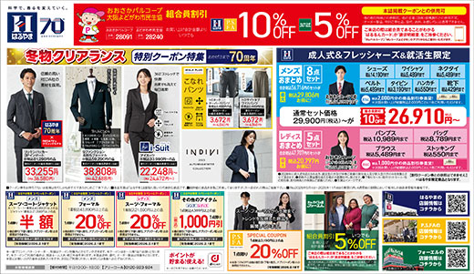 [はるやま] 組合員割引10%OFF 本誌掲載クーポンとの併用可