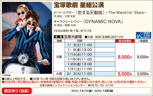 | 【宝塚歌劇 星組公演】 宝塚大劇場 15:30 |