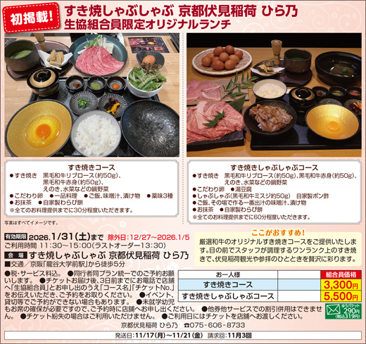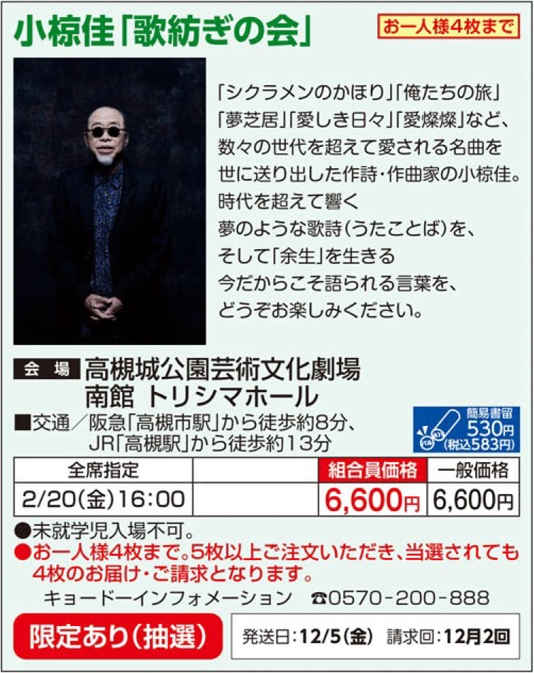 生協で販売済の公演対応は以下のとおりです。