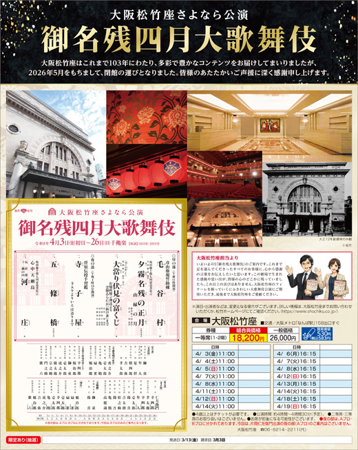 7/4回 | 8/30(金)18時にHPで発表 | 新歌舞伎座営業課 06-7730-2121 https://www.shinkabukiza.co.jp/ |