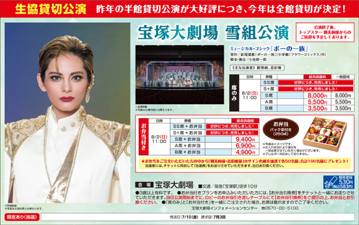 7/3回 | 公演予定(振替・払戻し可) ※振替・払戻し希望の方は、右記の団体専用番号にお電話お願いします。 |