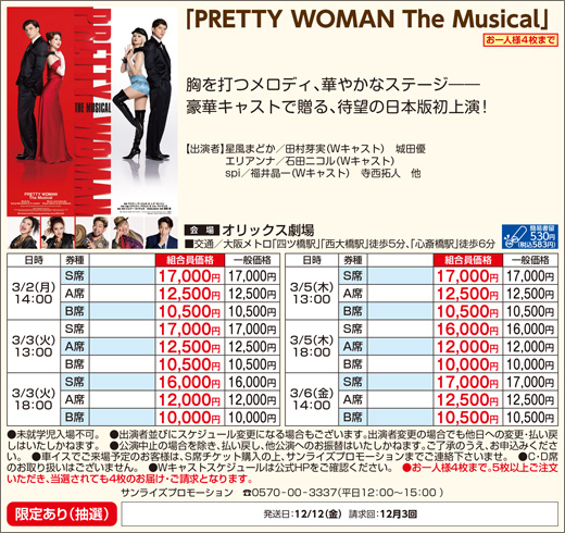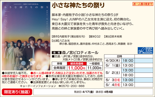 株式会社梅田芸術劇場 シアタードラマシティ 06-6377-3888 https://www.umegei.com/schedule/1202/ |