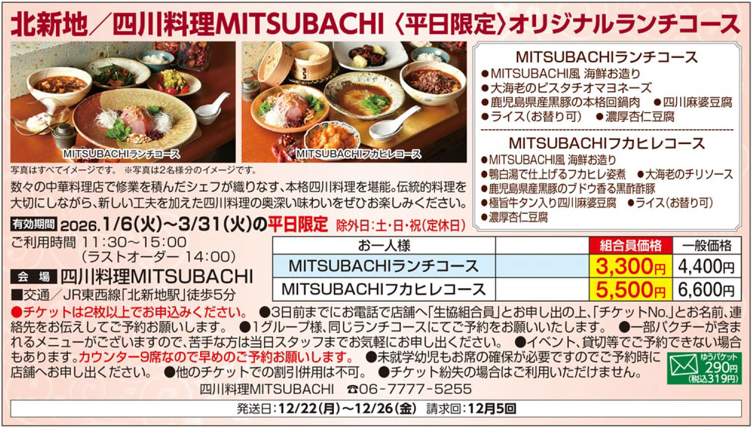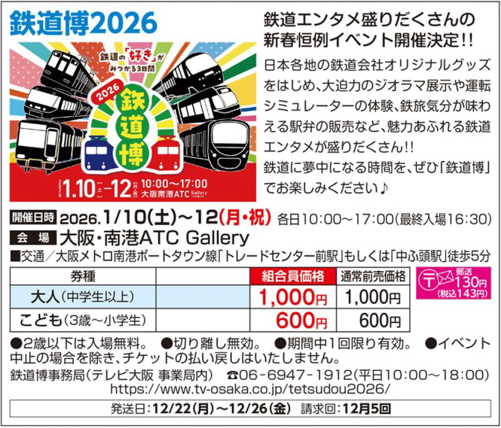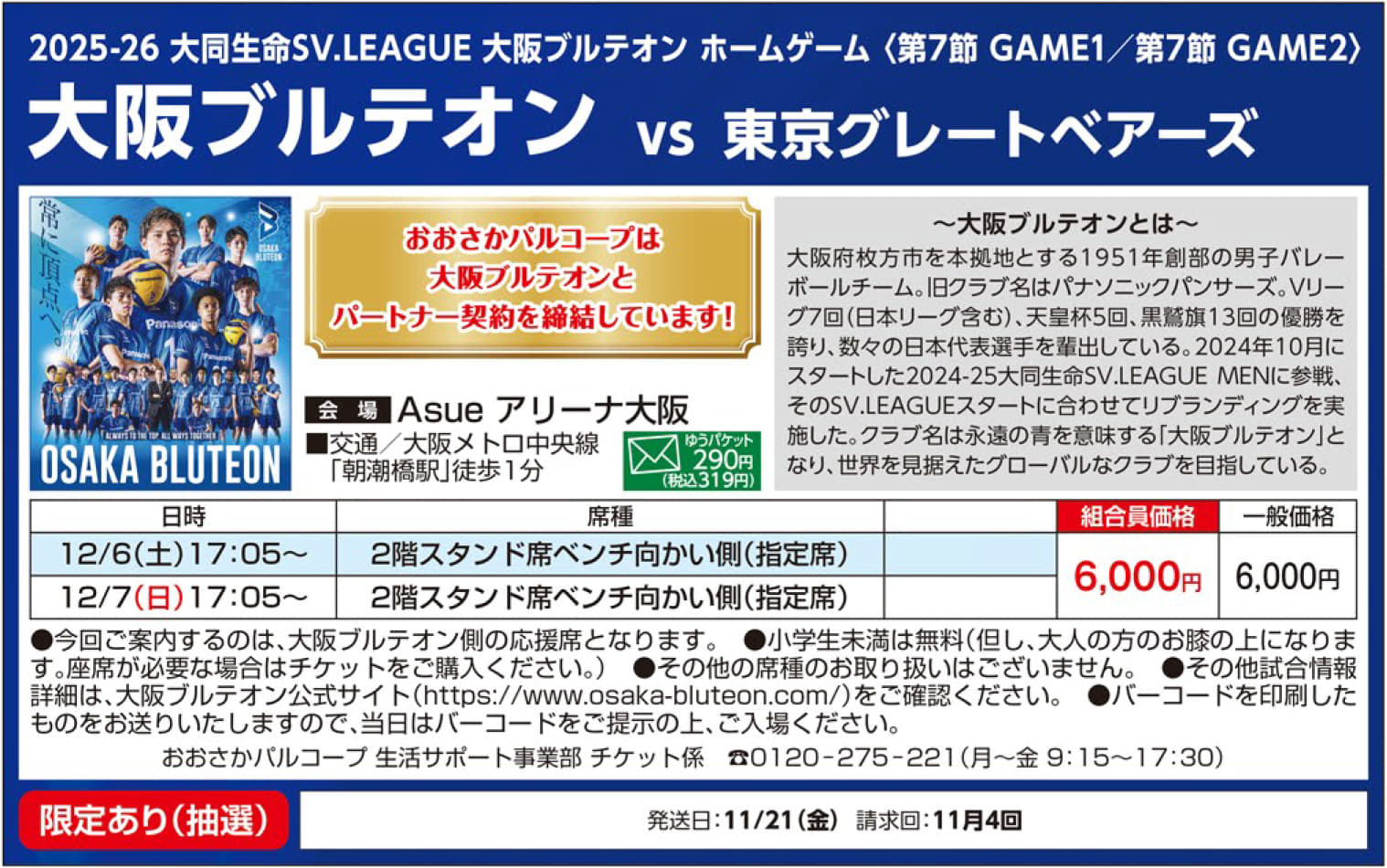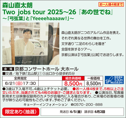 6/2回 | 8/30(金)17時決定 ※公共交通機関の運休等で来場困難な場合は払戻し可 |