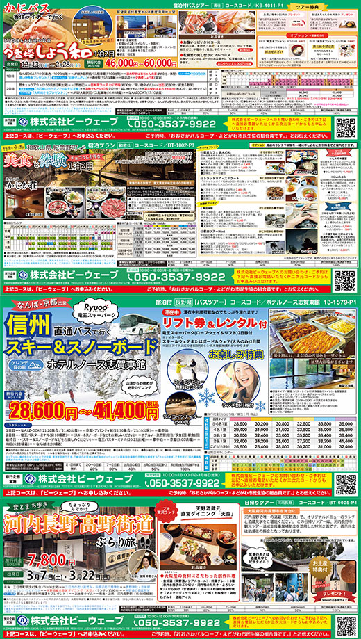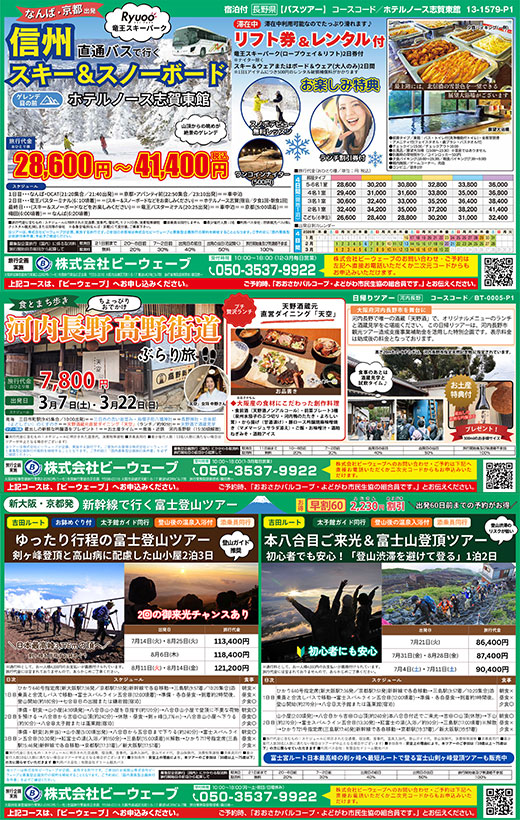 ご予約はビーウェーブへ直接お電話ください。ご予約・お問い合わせ TEL 050-3537-9922