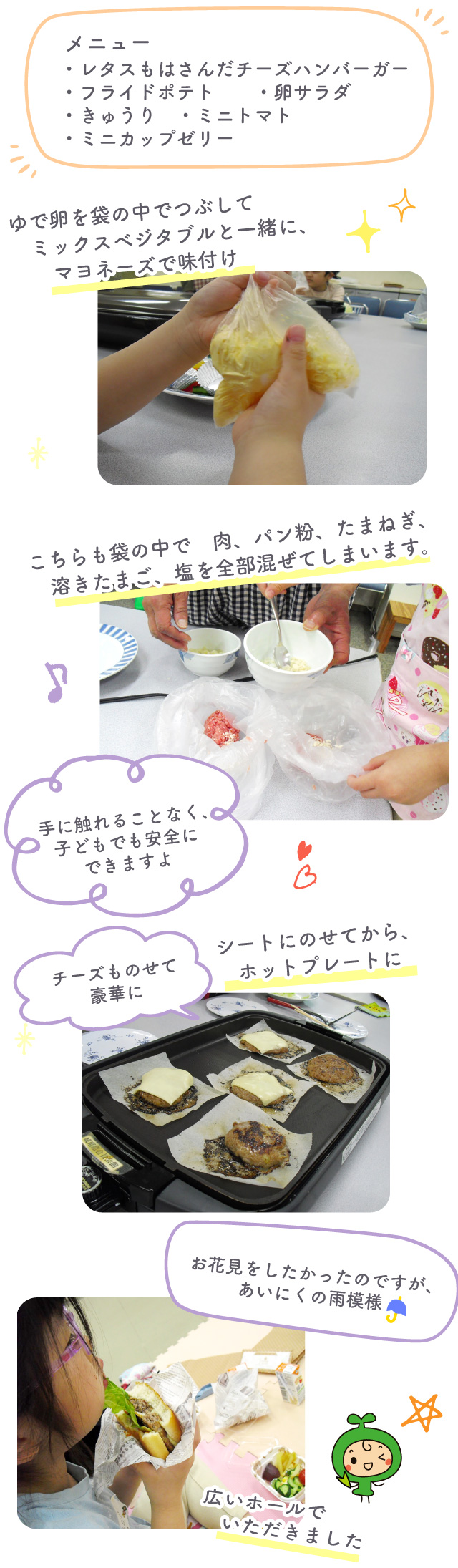 子どもたちが自分たちでホットケーキを焼いて、たっぷりバターをのせていただきました。ふわふわのかる~いバターはいつもとちょっと違って、とてもおいしかったです。