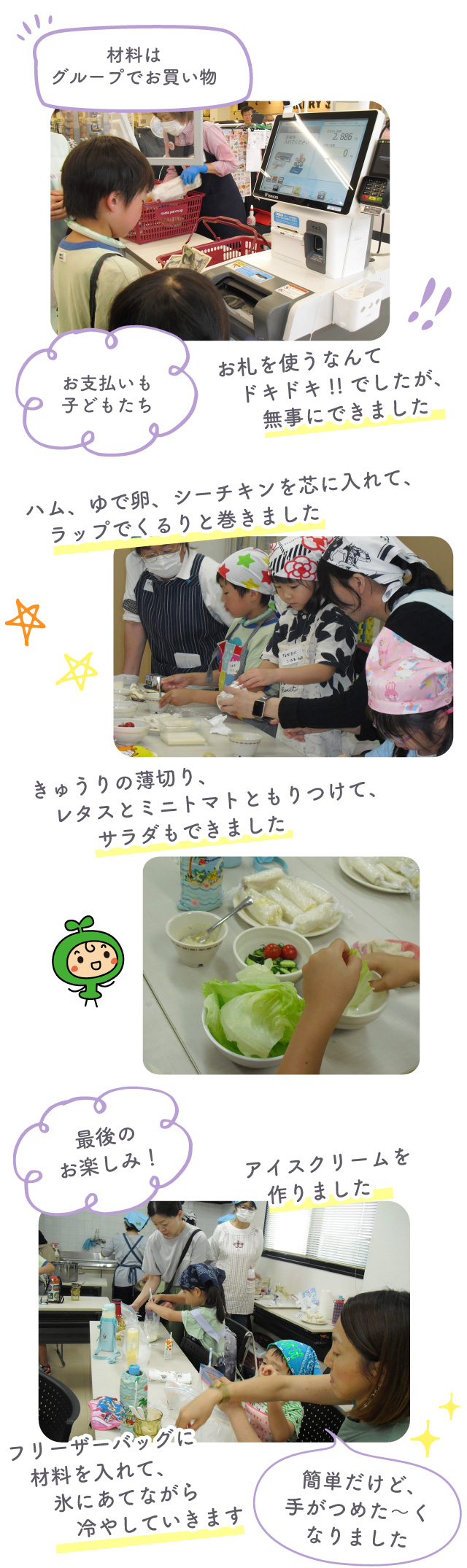 「のりまきを巻くのがむずかしかったけどおもしろかった」という感想をたくさんいただき、難しいことにもチャレンジすることが達成感や自信になるんだと、スタッフも嬉しい一日でした。