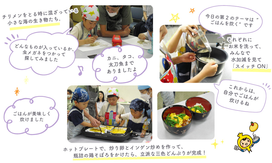 毎回子どもたちが自分でお料理をして、親子で楽しくいただきます。