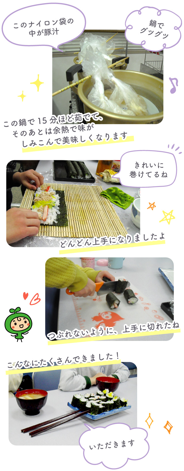 節分を前に細巻寿司と飾りいなり寿司を子どもたちが作りました。