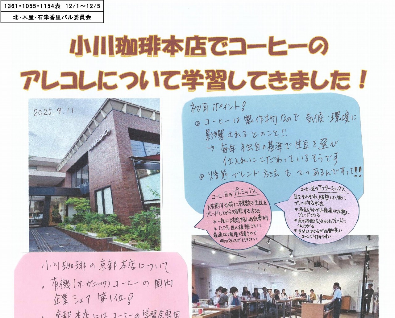 寝屋川西地域活動委員会・北パル委員会 小川珈琲本店でコーヒー…