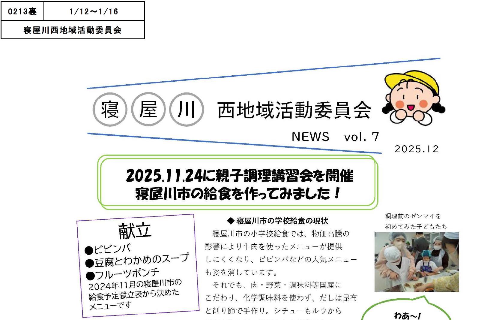 2025.11.24に親子調理講習会を開催。寝屋川市の給食を…
