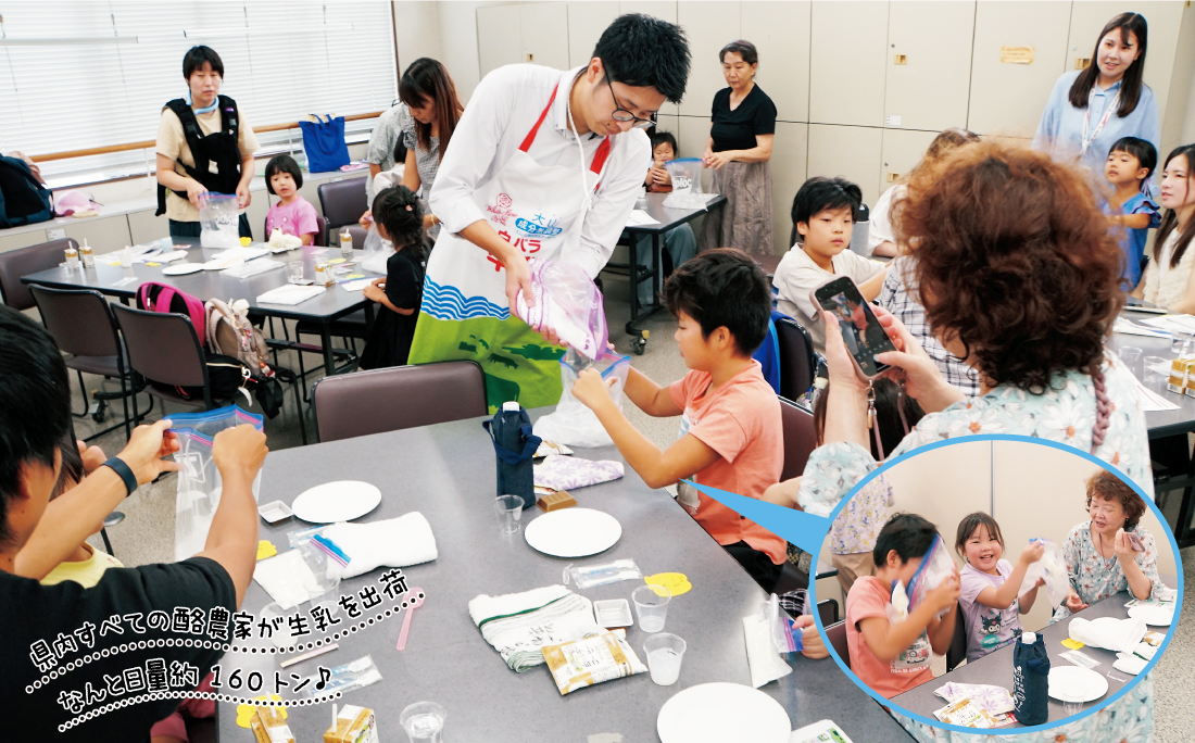 夏休みに子どもたちと一緒に牛乳について楽しく学びたいと開催。お子さん連れのご家族が多く参加されました。