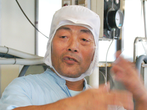 最近では、芋すり機を持ってる工場はほとんどないだろうねぇ。原料は自然のものだから、芋の色や含まれているグルコマンナンの量が少しずつ違うんだ。
