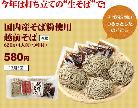 年末の縁起物(えんぎもの)"年越しそば"。そばの風味を楽しみたい方には、"生そば"がオススメです。