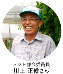 トマト作りは難しい。だからこそ面白い。品種は約30年間ずっと桃太郎です。こんなに長く続く品種は珍しいですよ。最近また桃太郎の良さが再評価されています。これからは、食べ物がなくなるんじゃないかと思うくらい後継者のことが気がかり。だから新規就農の川村くんには期待しています。若い人の感覚は全然違って刺激にもなります。