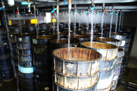 入荷後まずは残留薬品検査の確認と泥臭のチェック。5人の検査官のうち1人でも少しでも泥臭を感じれば加工はせず、立て場で清水にさらして試食検査という流れを繰り返します。