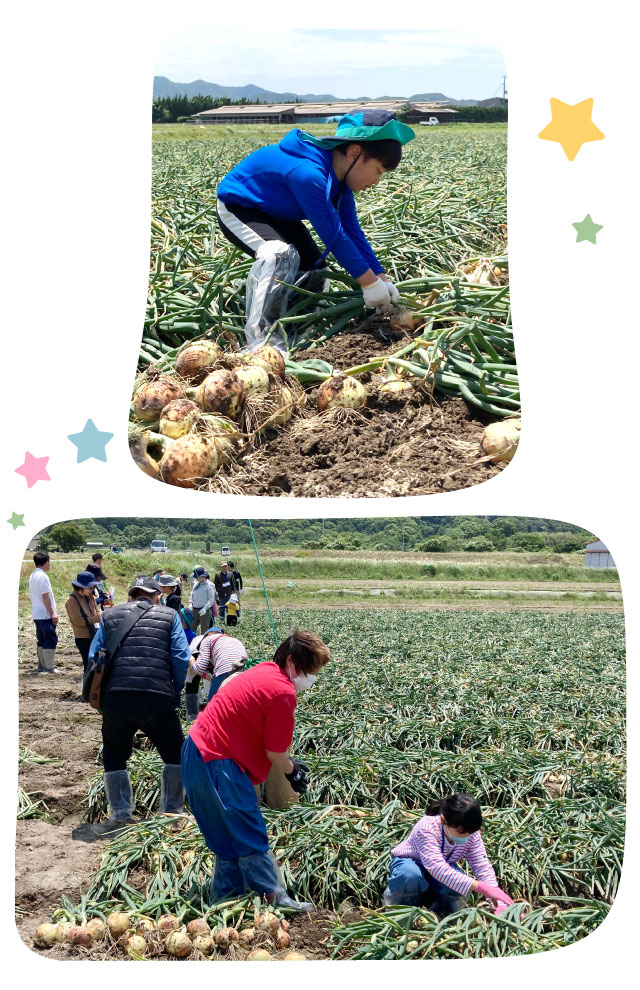 たまねぎほりなどのきちょうな体けんをさせていただき、ありがとうございます。たまねぎ、あまくておいしかったです。