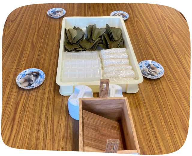 材料は、柿の葉・酢飯・酢漬けのサバ。