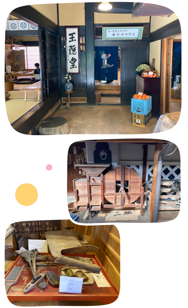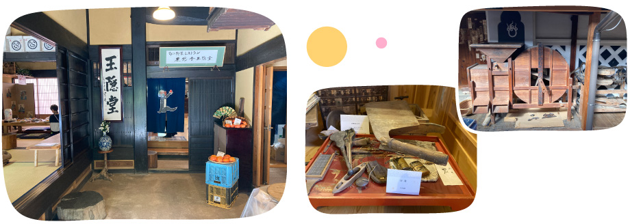 江戸時代の小物や脱穀機などがたくさん飾られていました。
