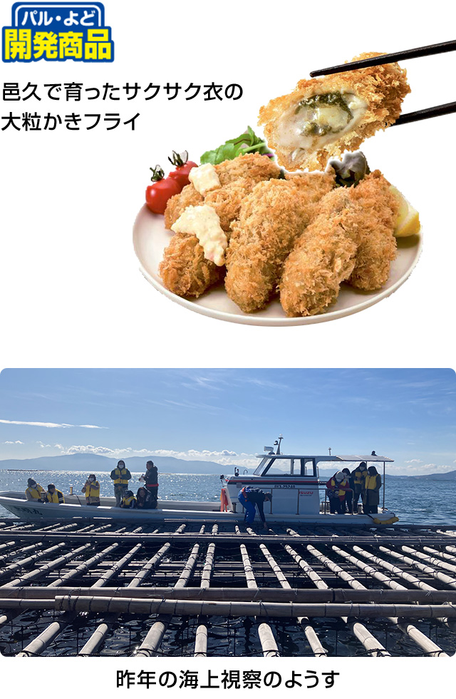 パルよど開発商品「邑久で育ったさくさく衣の大粒かきフライ」に使われているかきの産地を訪問し、海上視察などを通して生産者さんと交流しませんか?
