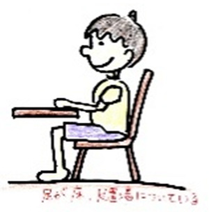 テーブルは子どものみぞおちくらいの高さになるように座ることができるイス。イスに座ったとき、両足が床または足置き台にペタッとつくこと。