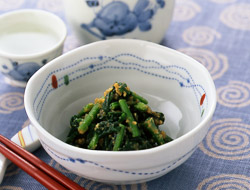 ほうれん草は塩少々を加えた熱湯でゆでて水にとり、水気を絞って2cm長さに切る。