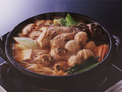 3を土鍋にうつし、スープ、Bを加えて火にかけ、煮立ったらつみれ団子、2の野菜を加えて煮、煮汁ごととって熱いうちにいただく。 |