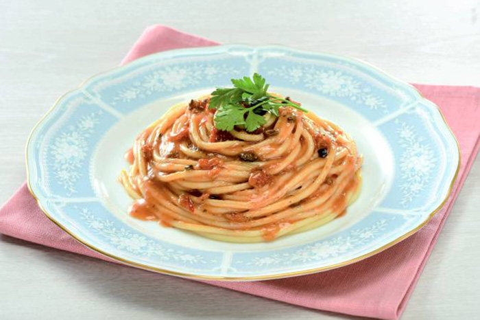 一株トマトのドライトマトを使用したパスタソースです。「オーリオ」とはオイルのことで、伝統的なイタリアの調理方法です。