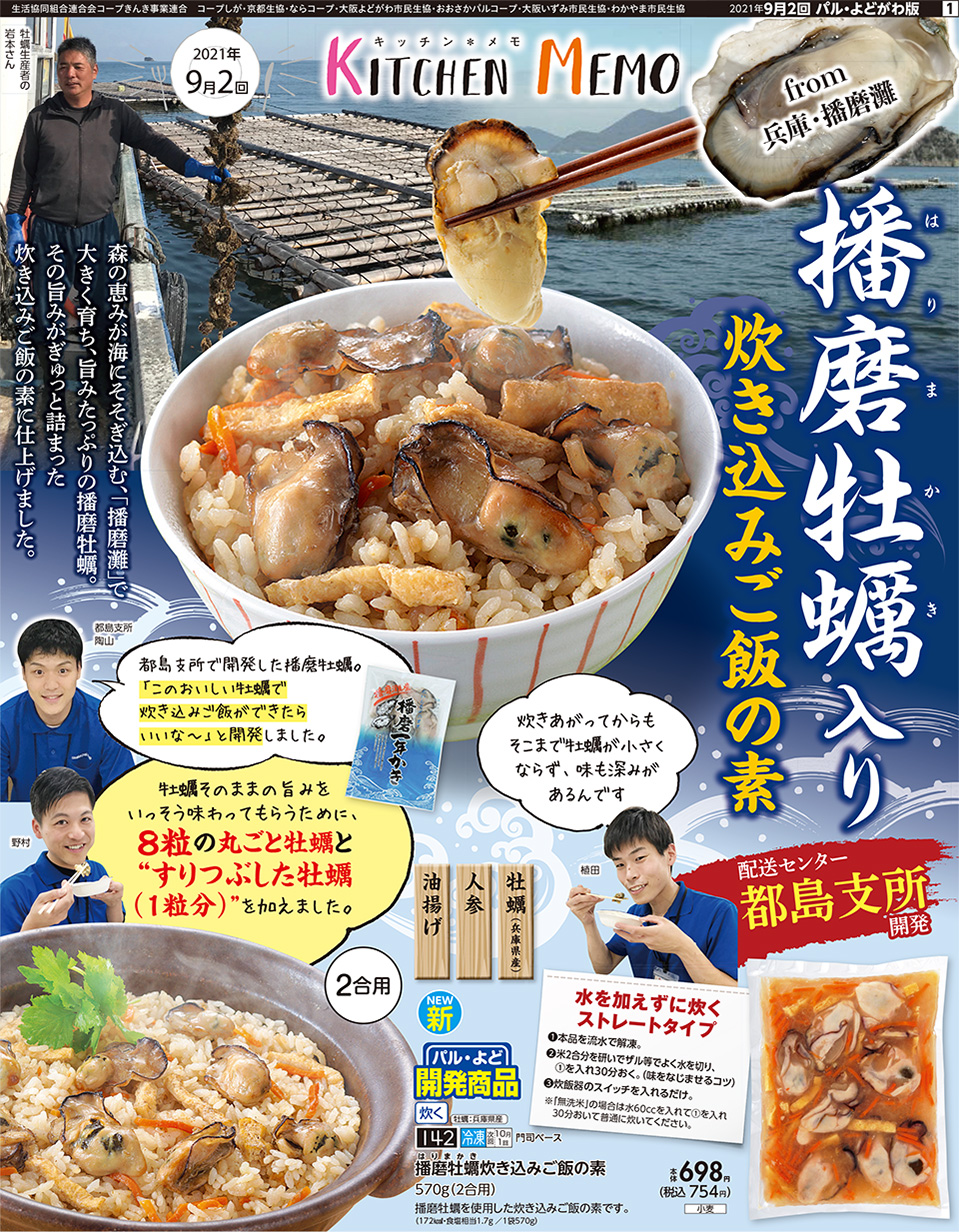 パルコープ都島支所で開発し、昨年デビューした播磨(はりま)牡蠣。「このおいしい牡蠣で炊き込みご飯ができたらいいな~」と新たに開発しました!