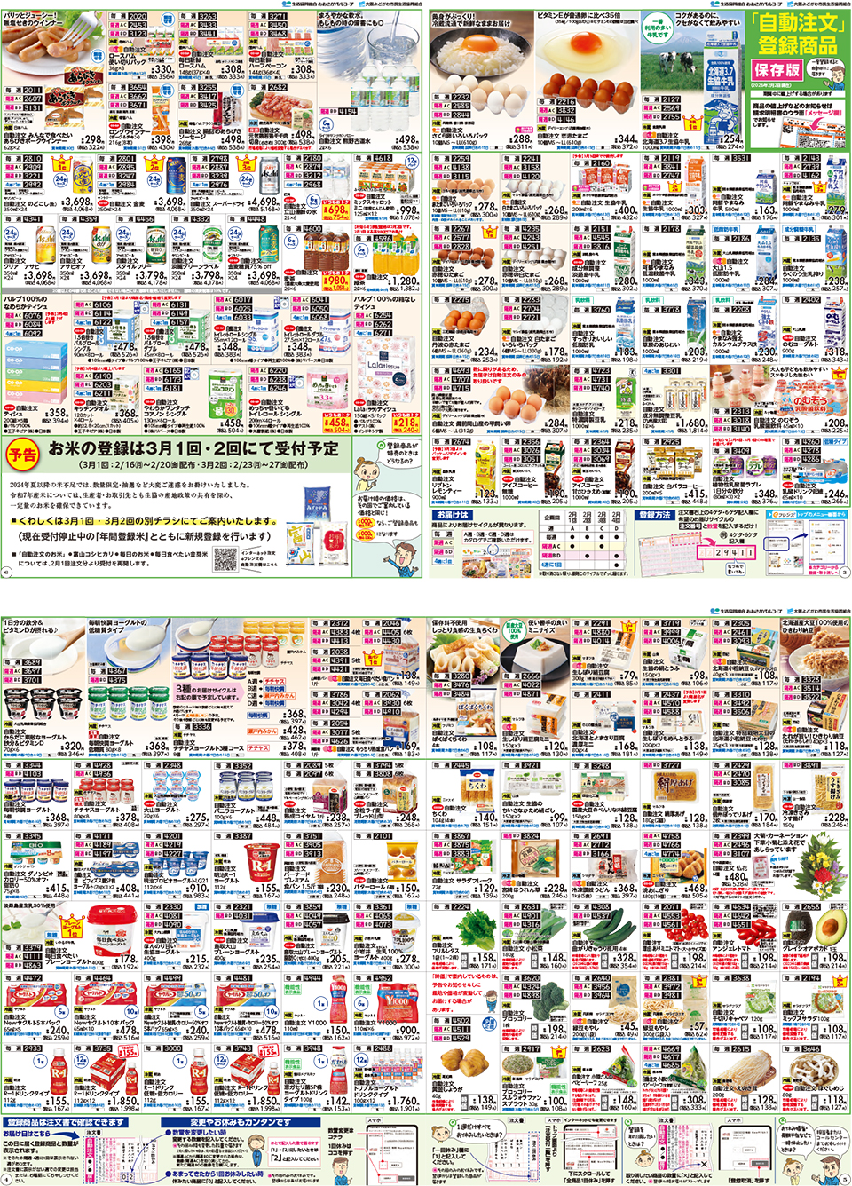 ■「自動注文のお米」(富山コシヒカリ・毎日のお米・毎日食べたい金芽米)については、2月1回注文分より受付を再開します。