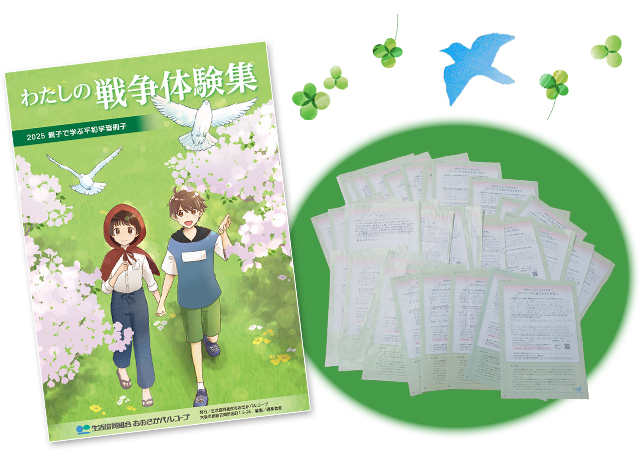 被爆・終戦80年を機に作成した、親子で学ぶ平和学習冊子「わたしの戦争体験集」。パルコープの組合員さんに寄稿を呼びかけて、16名の方から連絡をいただき、文章を寄せてくださった方や、直接お話をうかがいに訪問取材させていただいた方もいらっしゃいました。